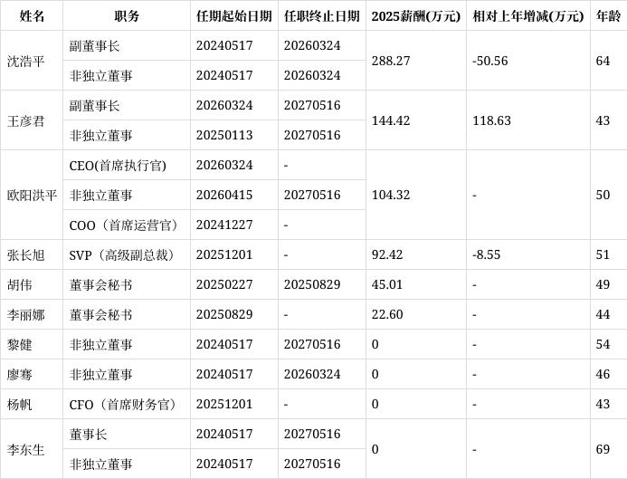 根据2025年报数据,剔除独立董事、监事会主席、监事后,TCL中环共有10位董事和高级管理人员。从年龄看,TCL中环董事和高级管理人员平均年龄为51岁,年龄中位数为49岁,其中,董事长及非独立董事李东生年龄最高为69岁,CFO(首席财务官)杨帆年龄最小为43岁。