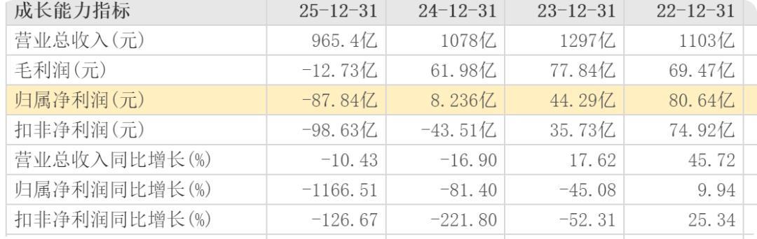 2025年广汽营收965.4亿元,同比下滑10.43%。归母净利润-87.84亿元,同比暴跌1166.51%。