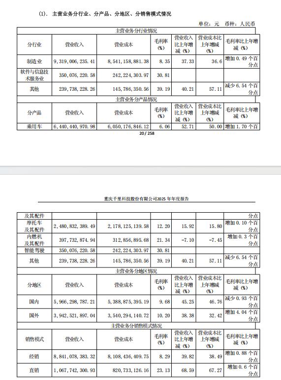 拆解千里科技的2025年业绩,可以判断这家曾经以摩托车和燃油车起家的公司,还没有丢掉“老本行”,公司绝大多数的收入依旧来源于传统制造业。