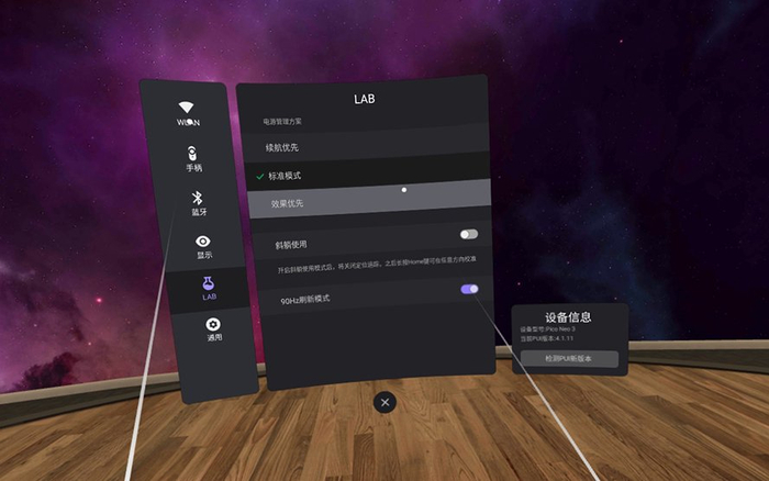 头显的菜单UI基本没有什么变化,操控起来十分方便,而且系统自带截屏和录屏功能,给他人分享自己的游戏成绩和游戏体验都十分方便,某些VR一体机需要投屏电脑录制才能分享VR内容,这些VR厂商真的应该要向Pico好好学习一下跟进优化截图和录屏的功能。