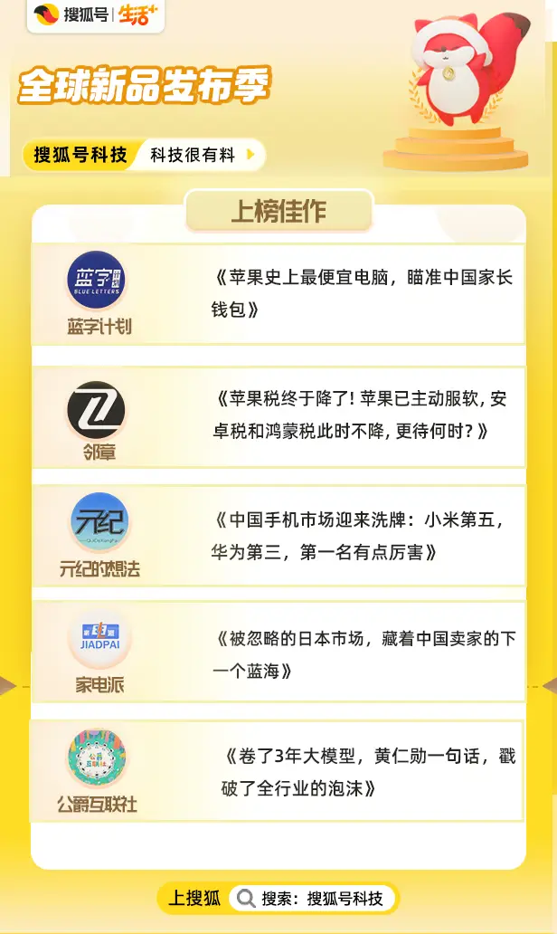 搜狐号科技【全球新品发布季】征文活动正式收官,@蓝字计划、@邻章、@亓纪的想法、@家电派、@公爵互联社等科技新潮客又有什么新发现?