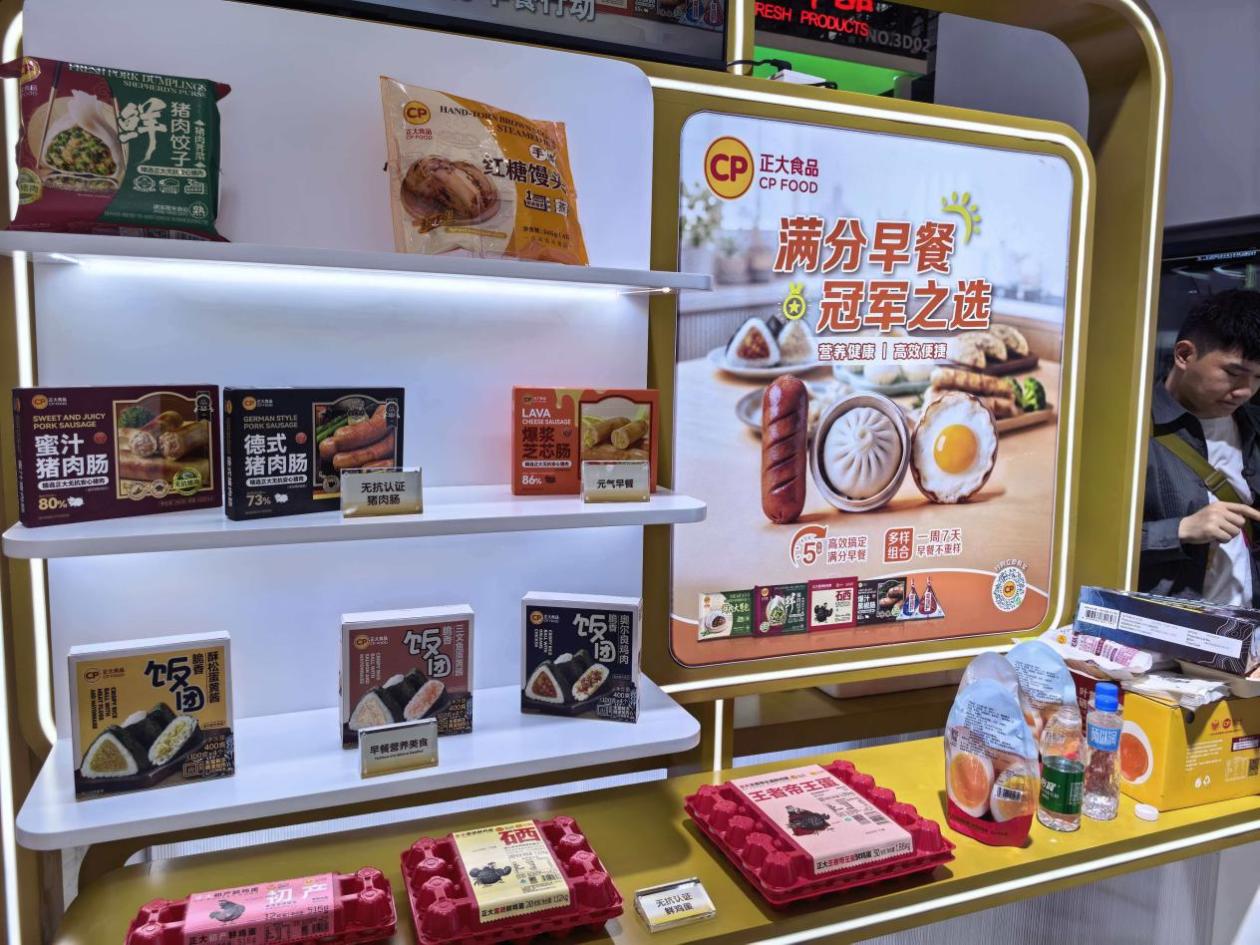 正大特别关注“三高一低”人群的需求——高血压、高血脂、高血糖伴随代谢下降,“我们会给他们做更加简单、易消化、易吸收的食材,不会过量”。针对年轻人,则强化蛋白质、碳水和微量元素的合理搭配。在展台上,正大展示了“满分早餐”方案,合理搭配优质蛋白、膳食纤维和碳水,由奥运冠军营养师参与设计。这一方案既可满足运动员的专业需求,也可适配小学生、上班族、银发族的日常营养补充,实现了从“通用食品”到“分龄定制”的跨越。