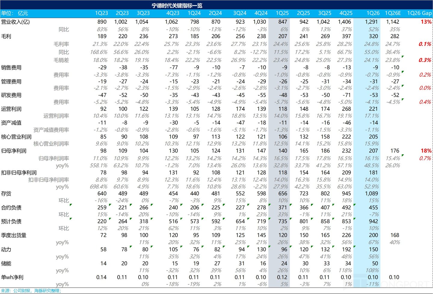 一季度,宁王归母净利207亿(同比增长49%)同样大幅高于市场预期176亿,扣非归母净利润164亿元,同比大增53%。