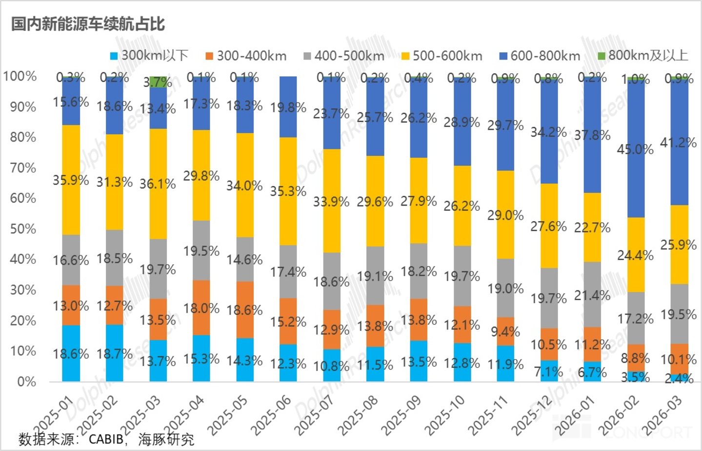 一季度国内600km续航以上的车型占比已达到40%-50%,大幅远高于去年一季度10%-20%的水平。这主要得益于: