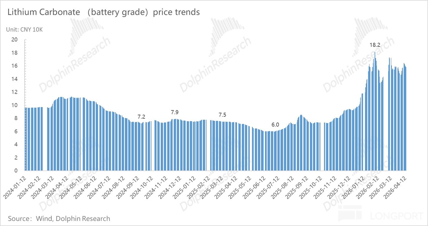 成本与结构双向承压:碳酸锂均价快速反弹至15-18万元/吨带来成本冲击,同时相对低毛利的储能电池出货占比提升。