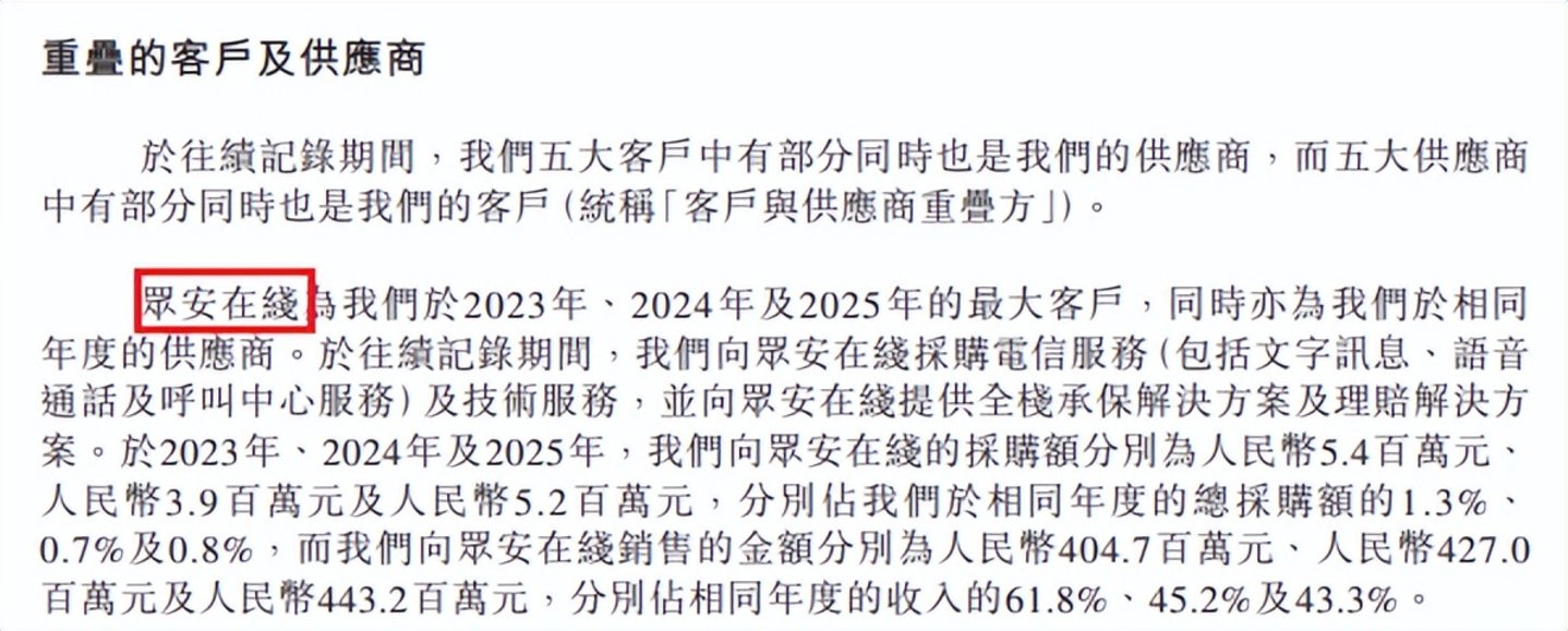 数据是最直接的证据。2023年—2025年,暖哇科技来自众安在线的收入占比分别为61.8%、45.2%、43.3%,虽然呈下降趋势,但依存度仍然高企。前五大客户收入占比分别为82.9%、78.9%、60.3%,客户集中度远超行业正常水平。