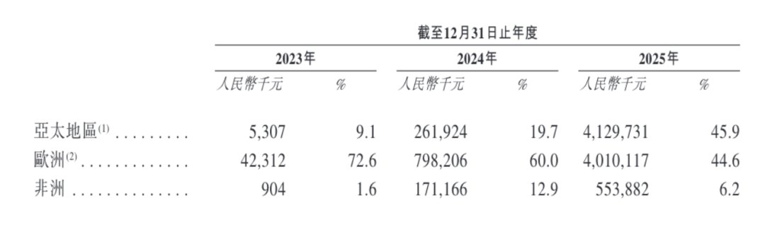 招股书显示,思格 2023 年收入只有5830.2 万元,2024 年猛增至 13.3 亿元,2025 年更是直接飙升90.01 亿元,相比 2023 年增长了 154 倍;