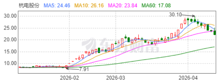 2026年以来,杭电股份(603618)股价一路突破历史高位,从不足8元一路攀升至30元上方,在震荡下行的电力设备板块中走出了一段独立且凌厉的行情。
