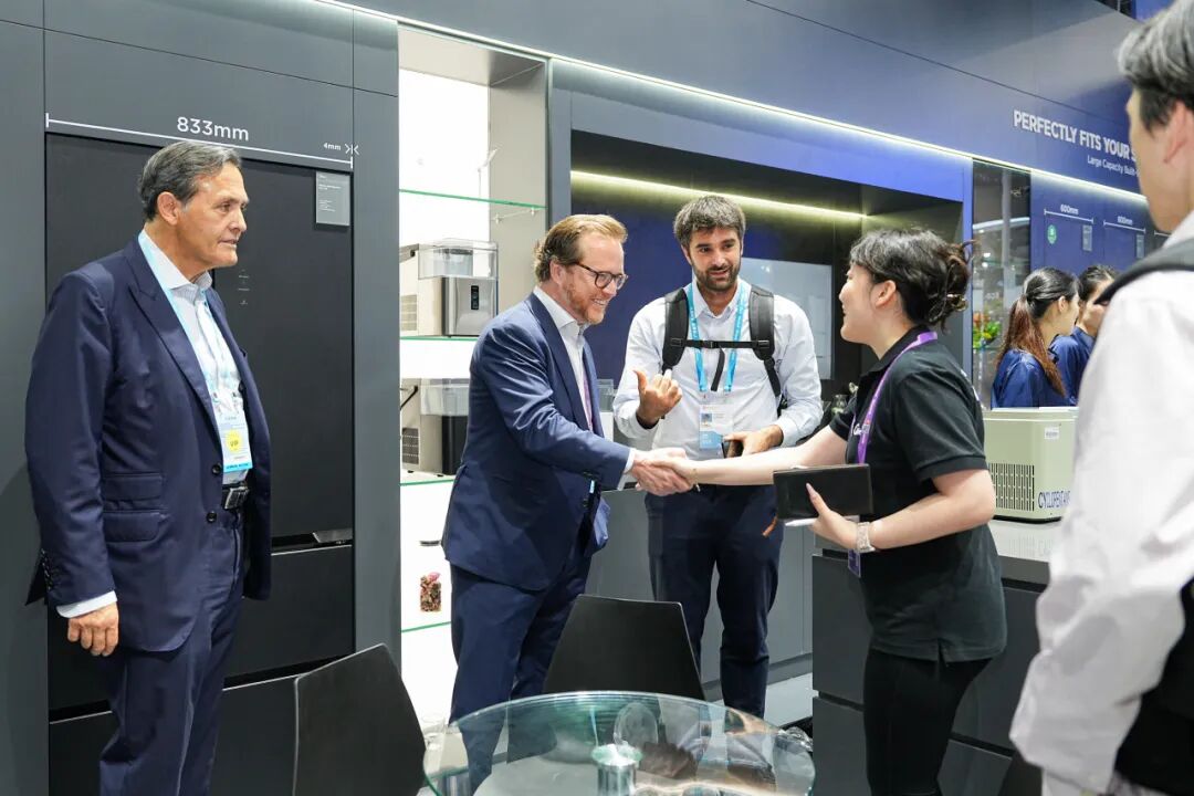 此外,风冷嵌入式冰箱树立了节能新标杆,配合商用展柜、家用制冰机及专业酒柜,全方位覆盖了从家庭到商用的多样化场景。