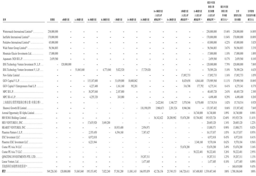 GGV Capital VL.P持股为10.06%,GGV Capital V Entrepreneurs Fund持股为0.37%,MPC III L.P持股为2.38%,MPC III-AL.P持股为0.26%,上海源彦企业管理咨询合伙企业(有限合伙)持股为0.92%,Shunwei Growth III(顺为)持股为7.84%,顺为旗下Astrend Opportunity III Alpha Limited持股为0.98%;