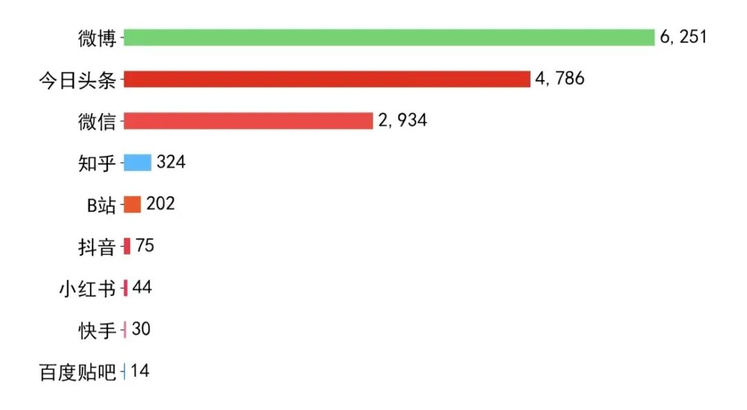 该事件全网传播篇次为41375条,事件主要传播渠道为微博平台,传播篇次6251条,占比15.11%。