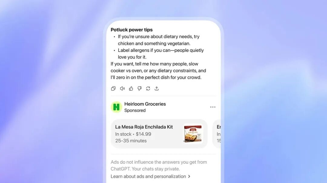 很多人以为,OpenAI做广告就是把传统平台的广告搬到聊天框里。事实恰恰相反,它从一开始就跳出了旧框架,走出一套完全不同的玩法。