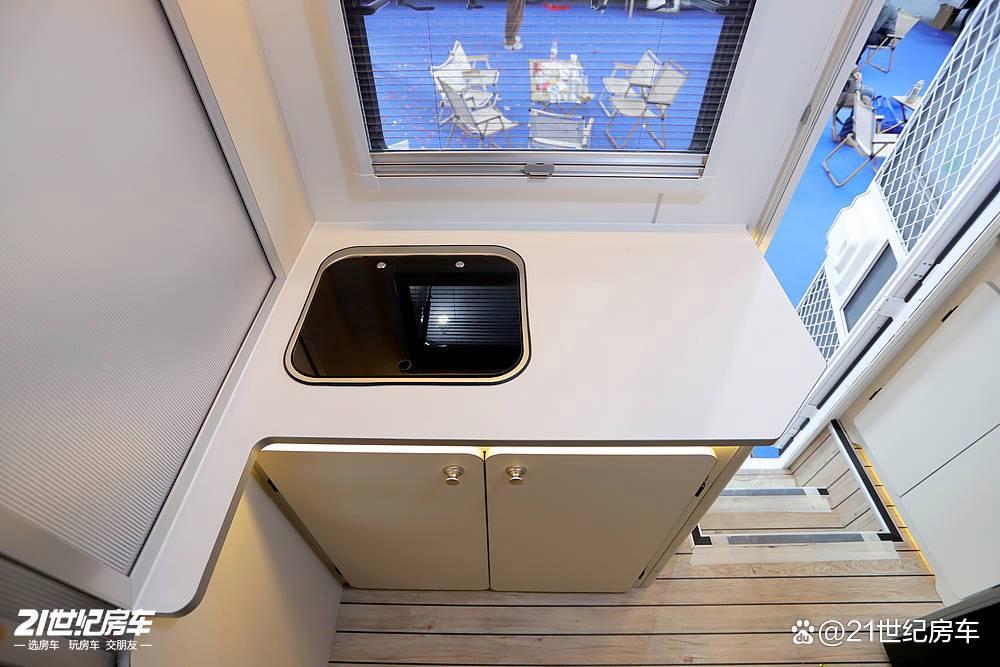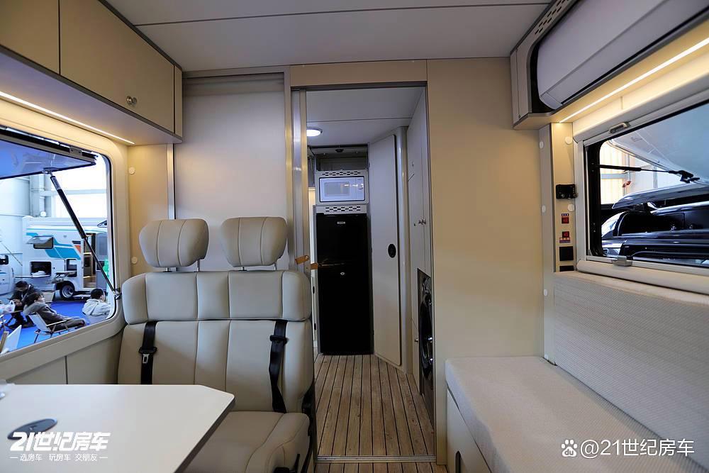厨房区域142升冰箱(冷藏97L+冷冻45L),食材保鲜无忧;微波炉、移动电磁炉、外置高原版柴油灶,中西餐烹饪自由切换。