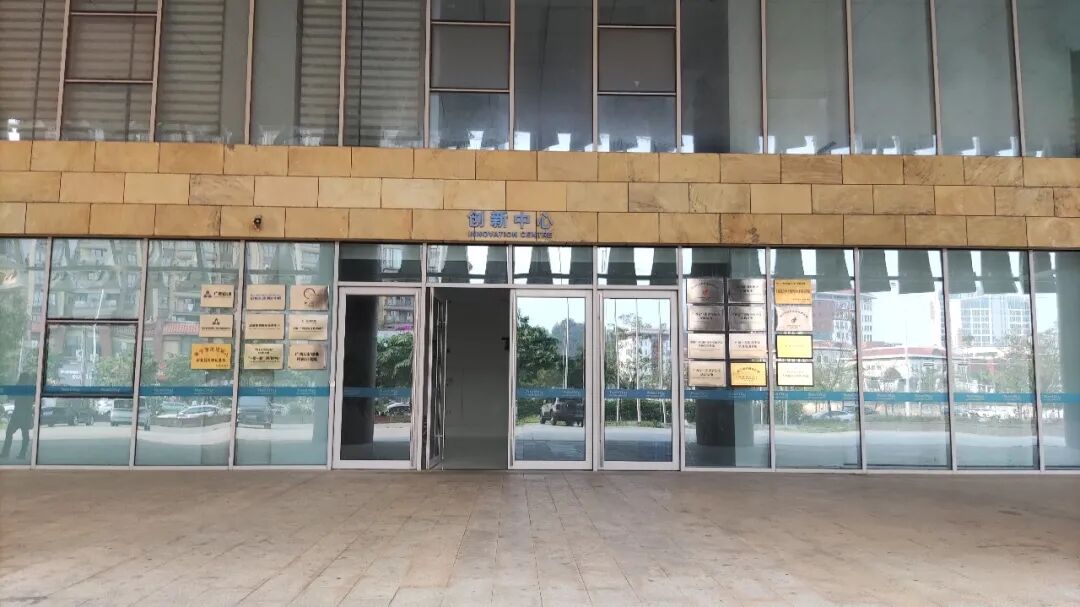 现场看到,创新中心大门开着,门口两侧挂着不少牌匾,比如广西青年企业家协会交流基地、大数据企业孵化基地、国际技术转移中心等。