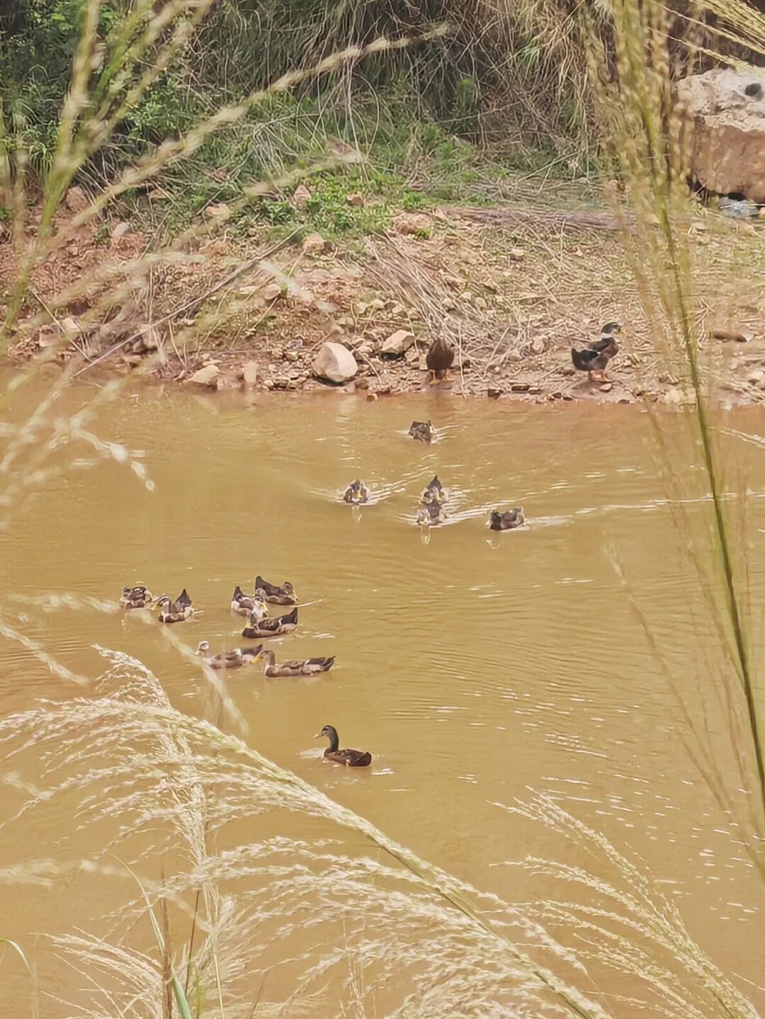 ▲一群鸭子在戏水
