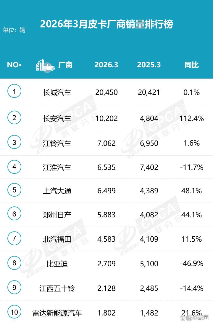 3月皮卡销量丨长安翻倍,长城微增,比亚迪得加把劲?