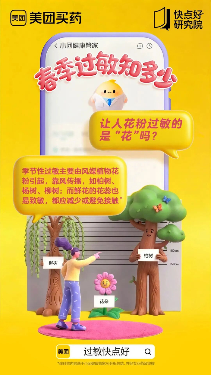 4月14日,美团推出“小团健康管家”,聚焦家庭日常健康管理,可记录家人过敏史、用药情况,咨询用药后直接联动美团买药,半小时送达,相当于把智能药房搬进家庭。