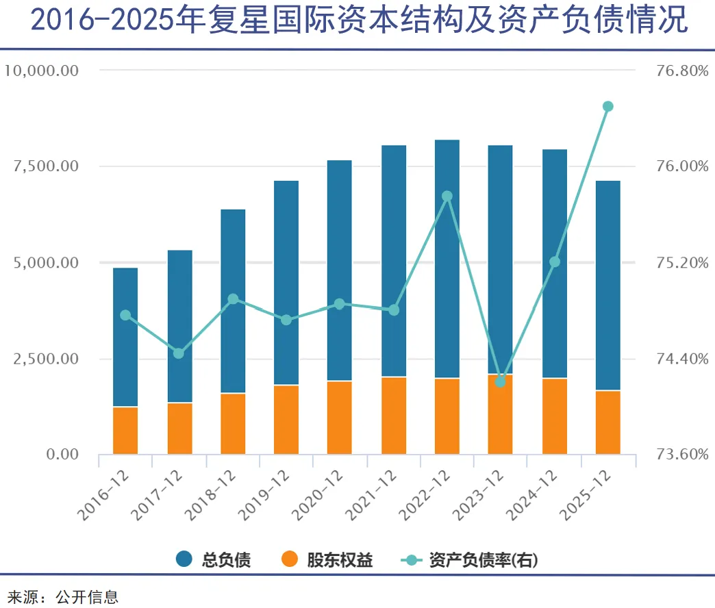 如果仅从数据来看,截至2025年末,复星国际的总债务规模仍高达2241.91亿元,总债务占总资本比率更是从2024年末的52.0%上升到了57.1%。