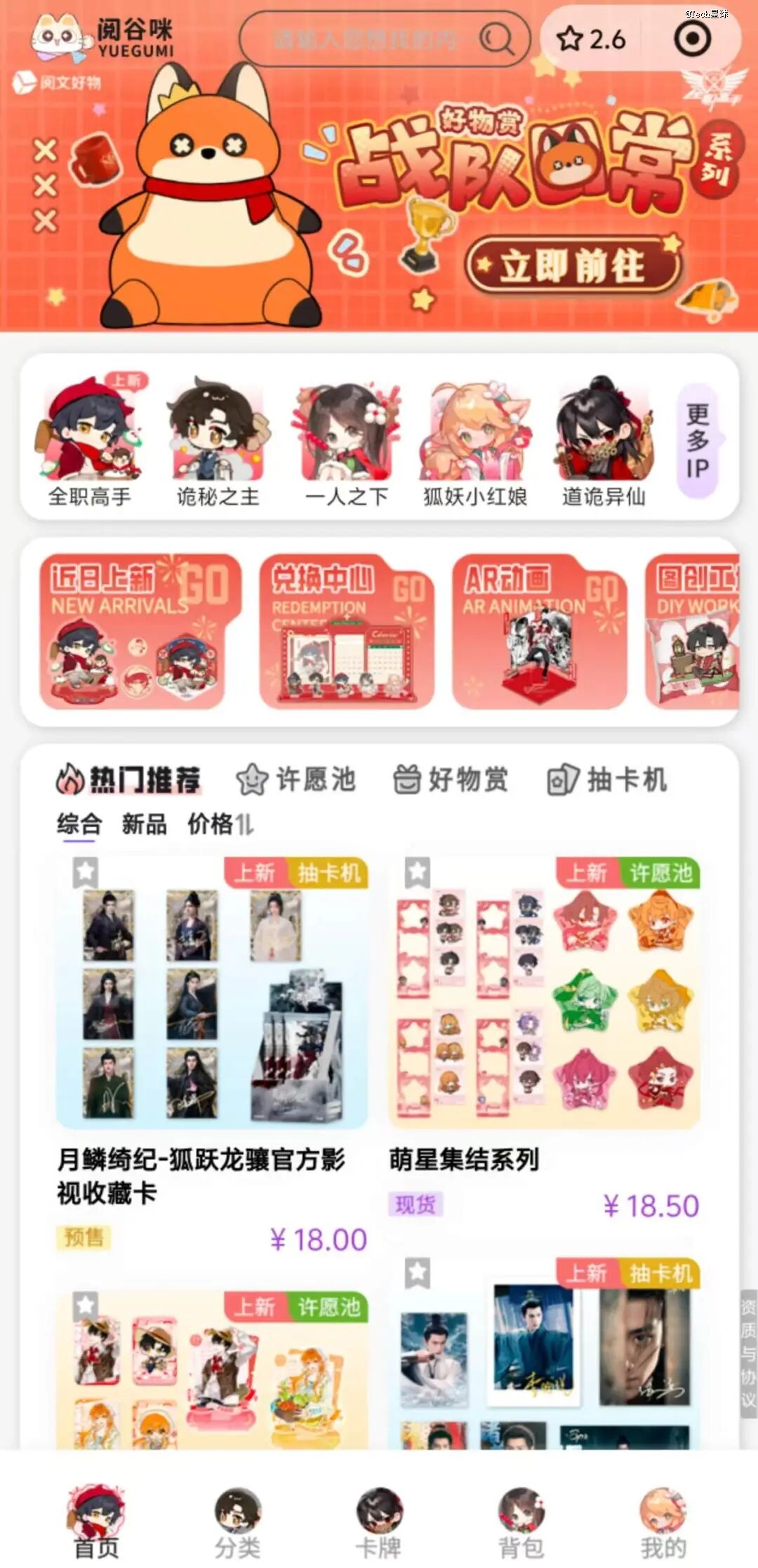 阅文凭借IP优势构建核心壁垒。阅文于2024年末推出“阅谷咪”小程序后,目前正推进独立App开发,“阅谷咪”依托《全职高手》《一人之下》《狐妖小红娘》等热门网文IP,打造从内容创作到衍生品变现的闭环,覆盖徽章、立牌、色纸、卡牌等全品类,接着通过“IP内容”到“粉丝社群”,再到“谷子消费”的模式,实现订单转化。现已成为阅文“谷子”业务的一个重要收入入口。