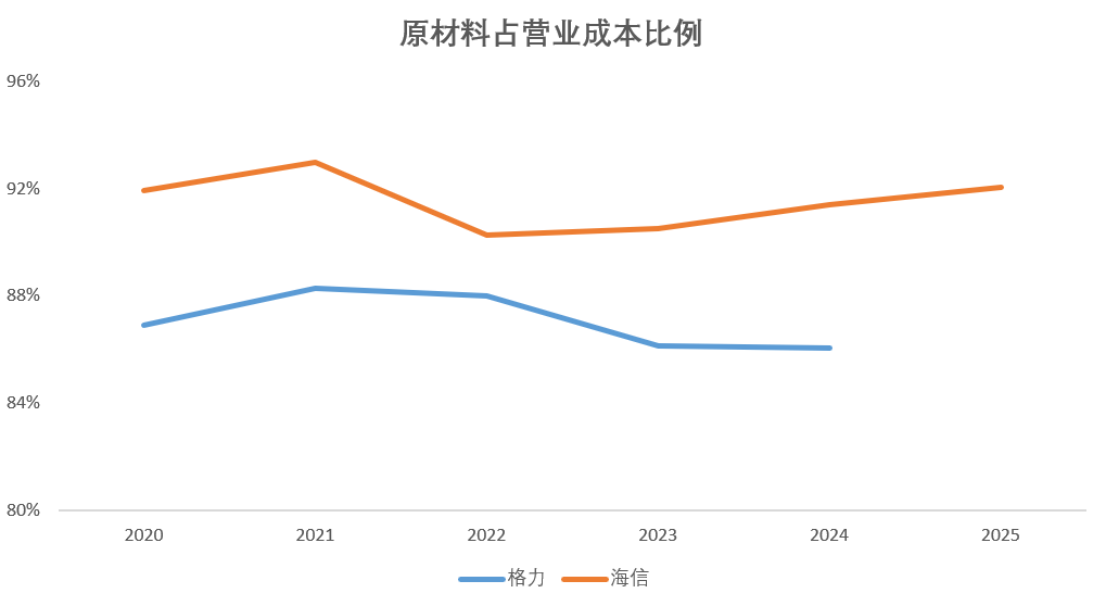 不过,和“海信们”比起来,格力的成本压力远没有那么大。