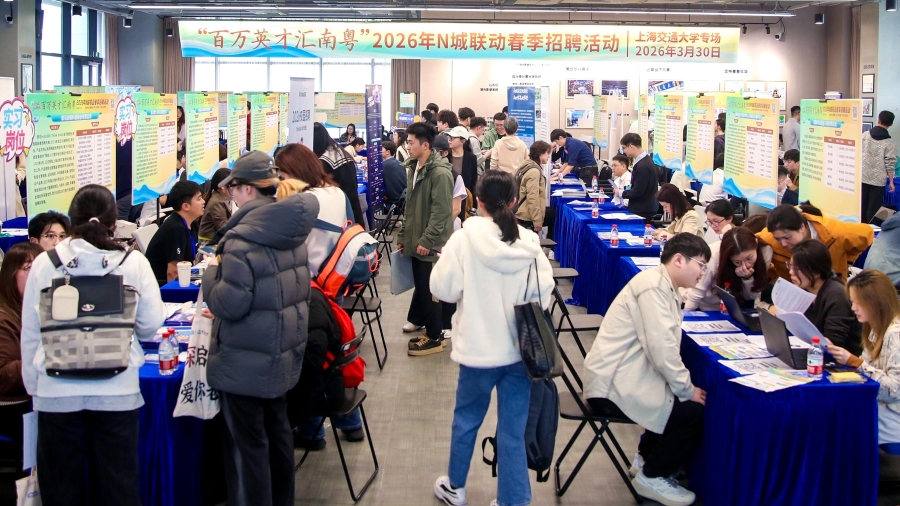 ▲3月30日,“百万英才汇南粤”2026年N城联动春季招聘活动在上海交通大学举办。深仁轩摄