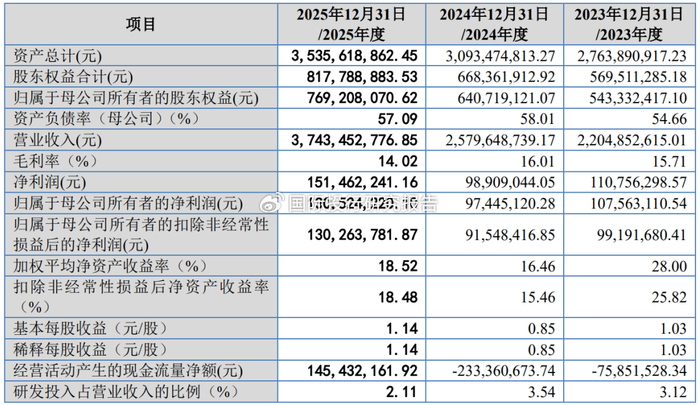 营收飙升:2025年营业收入达到37.43亿元,同比增长超过45%,显示出极强的业务扩张能力。技术积累:作为“专精特新”企业,公司拥有超过500项专利,具备较强的骨架平台设计与模具开发能力。