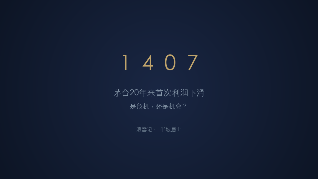 茅台20年来首次利润下滑。市场恐慌,股价大跌。