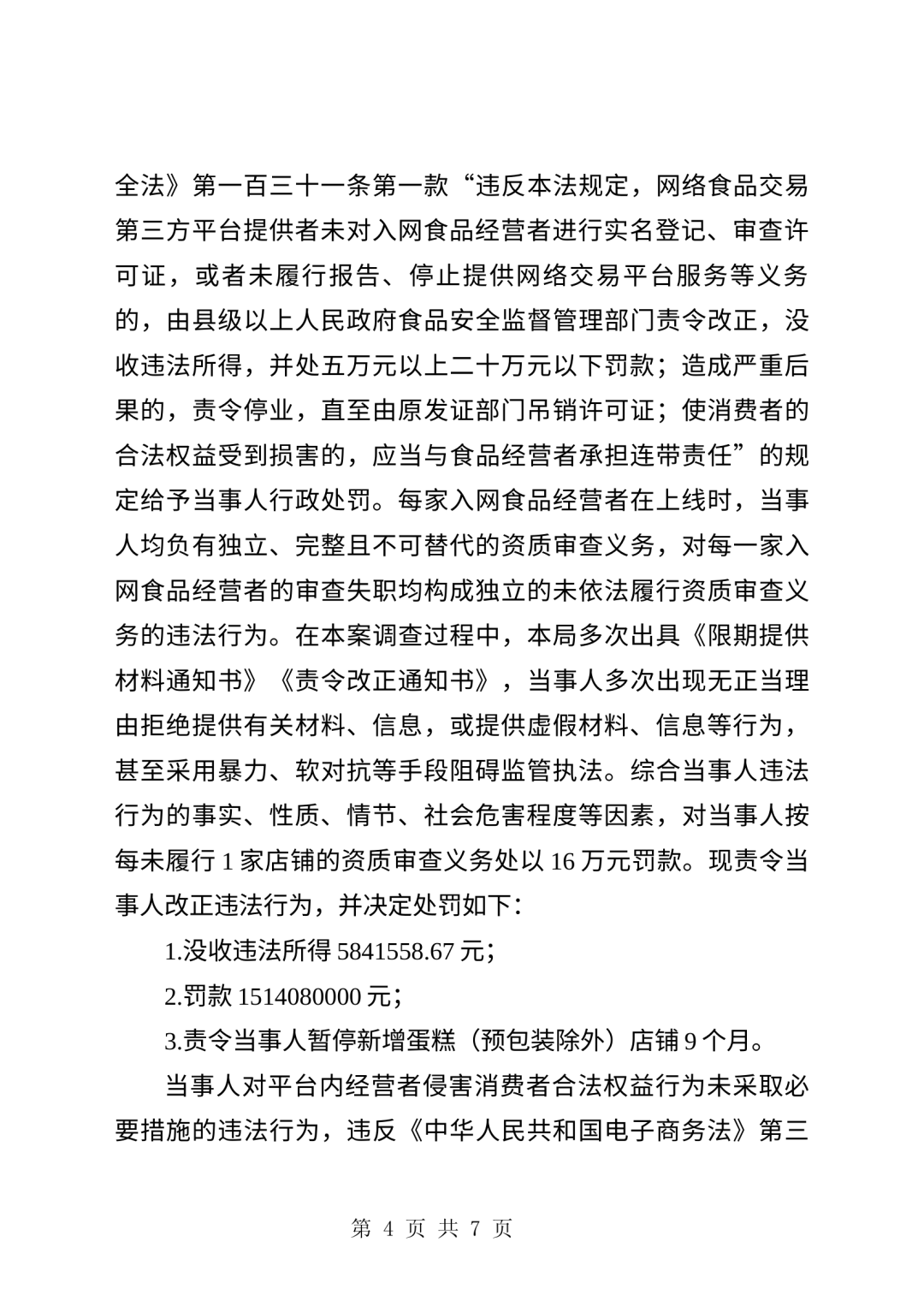 4责令暂停新增蛋糕店铺9个月