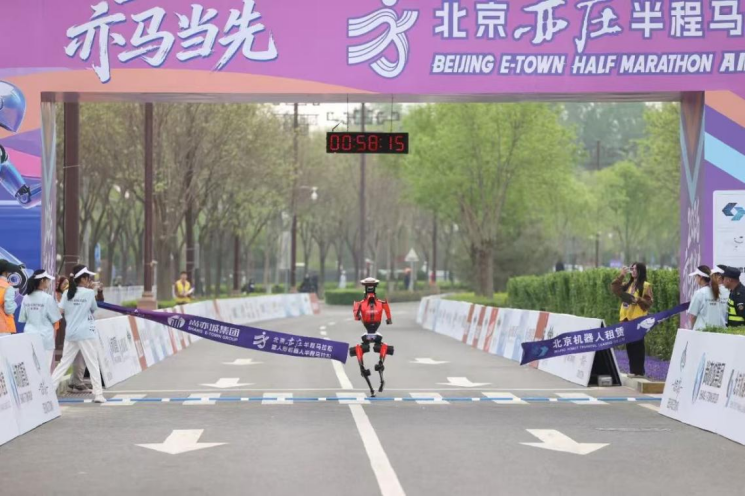 当发令枪在北京亦庄的机器人半马赛道上响起,数百台人形机器人如离弦之箭冲出起跑线。