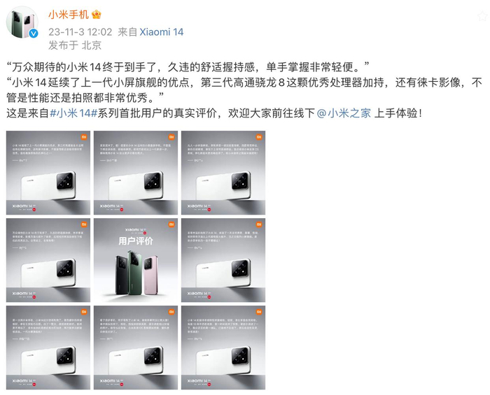 小米14首批用户评价出炉:手感、性能和影像广受好评