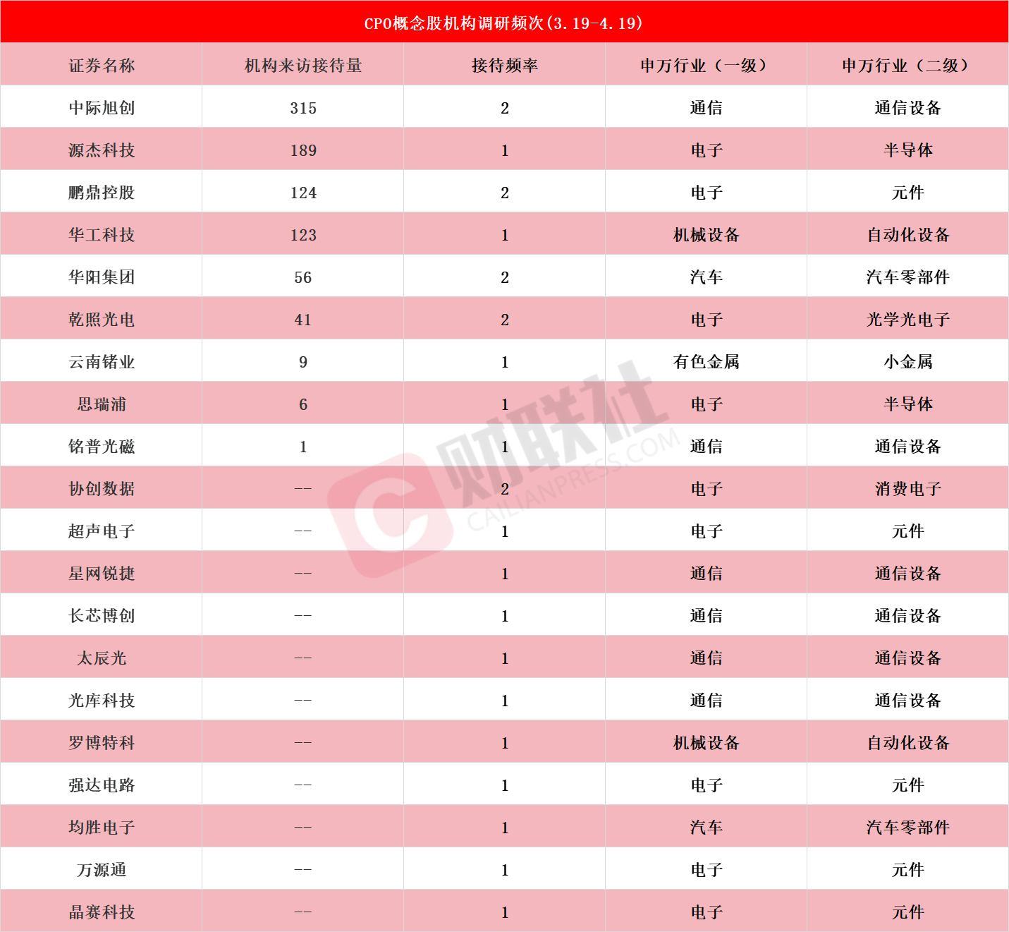 机构密集调研CPO概念股!龙头7天4板,近一个月接待量居前热门股名单来了