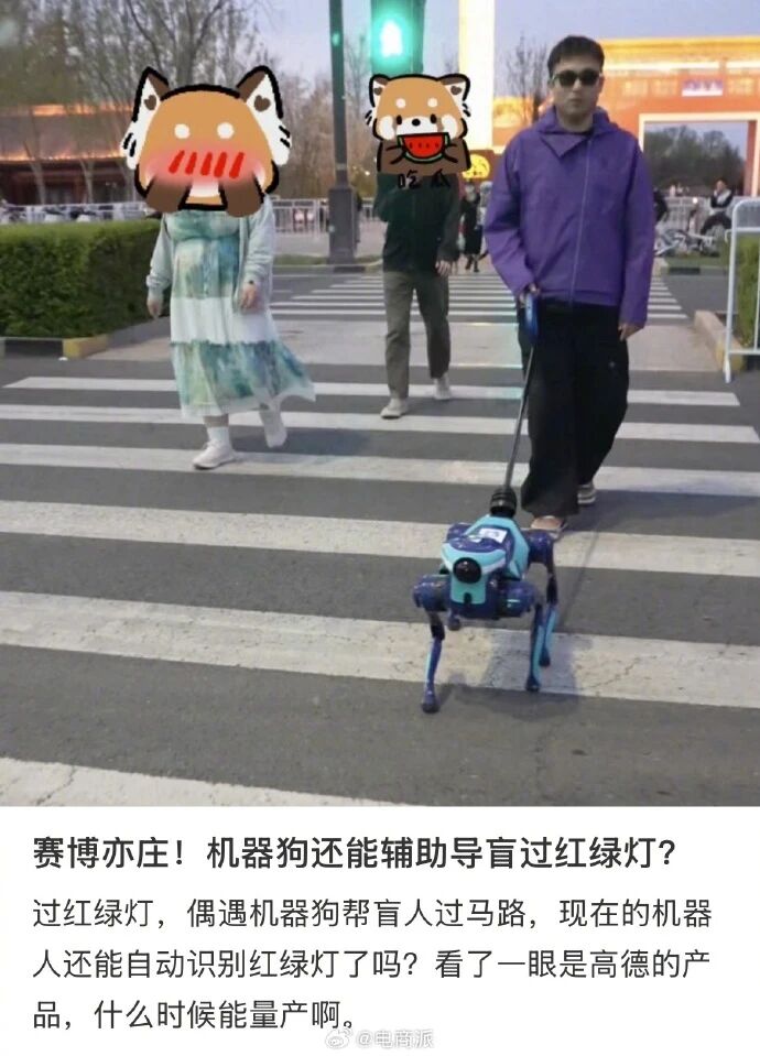 更有意思的是,还有网友拍到这款机器狗疑似已在真实场景中尝试承担导盲犬的相关职责。