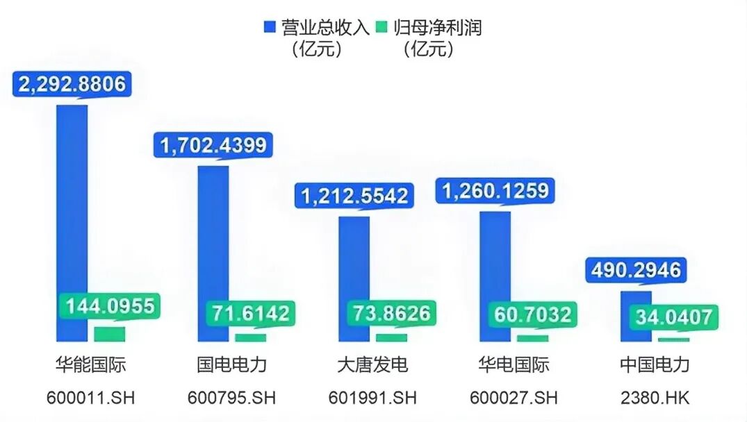图说:五大电力上市公司营收及利润情况