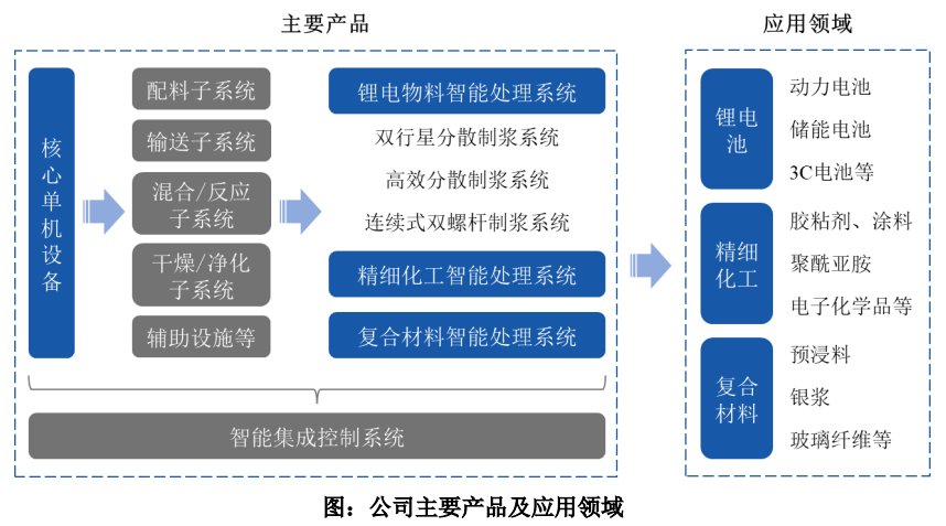 招股书披露,理奇智能专注于物料自动配料、分散乳化、混合搅拌等物料自动化处理领域,提供专业的物料智能处理系统整体解决方案。报告期各期,公司于锂电制造行业的销售收入占主营业务收入的比例分别为95.98%、91.81%、93.82%和 90.24%,锂电物料智能处理系统为公司的主要收入来源。
