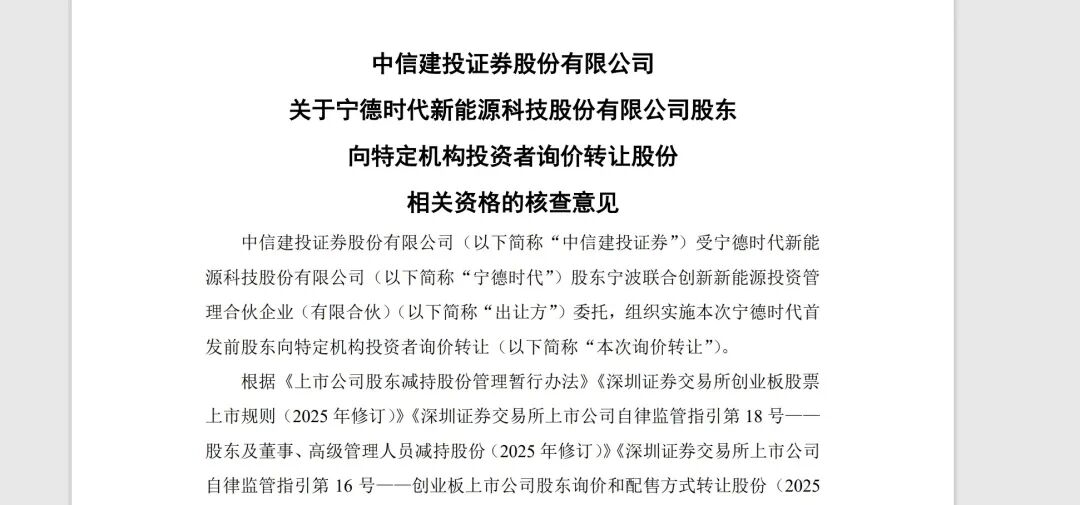 宁波联合创新作为宁德时代的早期财务投资者,持有公司6.23%股份,此次减持并非直接在二级市场抛售,而是选择了询价转让这一相对温和的方式。