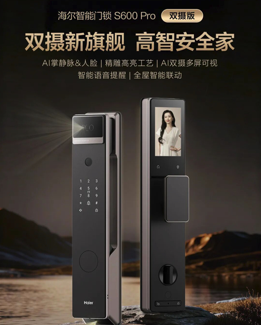 生物识别方面,3D人脸识别已成为旗舰标配,如华为X1、海尔S600 Pro和顶固K7 PLUS均强调其在极端光线下的秒级识别能力。同时,掌静脉识别因其高安全性与无接触特性,已逐渐与3D人脸识别方案绑定,“3D人脸+掌静脉”成为最受欢迎的生物识别组合。▲海尔S600 Pro
