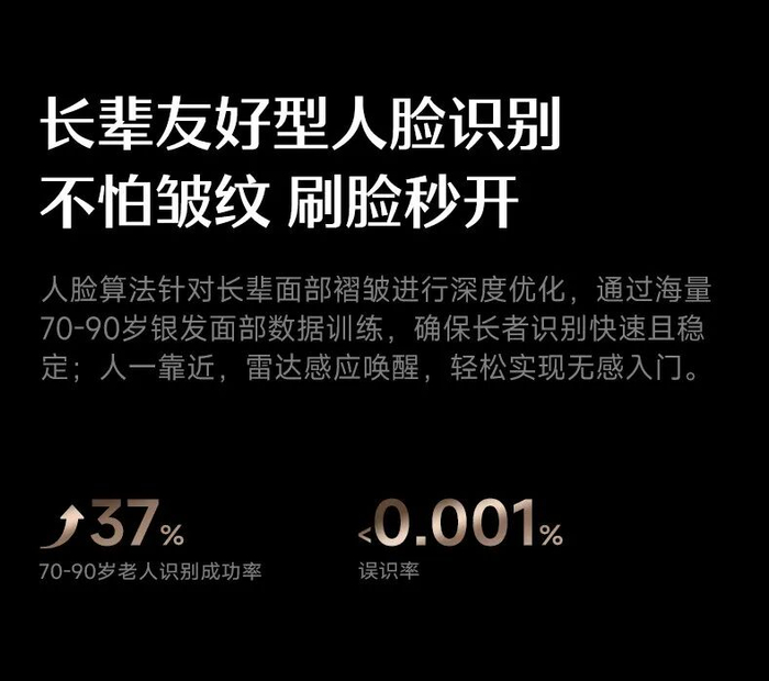 值得注意的是,部分企业在人群和场景方面进行了针对性算法优化。例如,德施曼C6F专研了针对老年人褶皱面部的3D人脸算法及GPTfinger曲面指纹,解决了老人识别难的问题;凯迪仕i60 Ultra支持微表情与活体唇动校验,将识别耗时缩短至毫秒级;鹿客V7 Max则通过指脉、掌脉、人脸及小天才手表解锁,实现了全龄段人群的精准覆盖。
