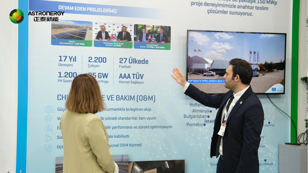 当地时间4月8-10日,土耳其伊斯坦布尔太阳能光伏展览会(Solarex Istanbul)在伊斯坦布尔国际会展中心召开。正泰新能携多款高效ASTRO N系列产品亮相展会,以扎实的电池技术积淀与组件制造能力,向土耳其及周边市场展示公司在新能源领域的核心实力。