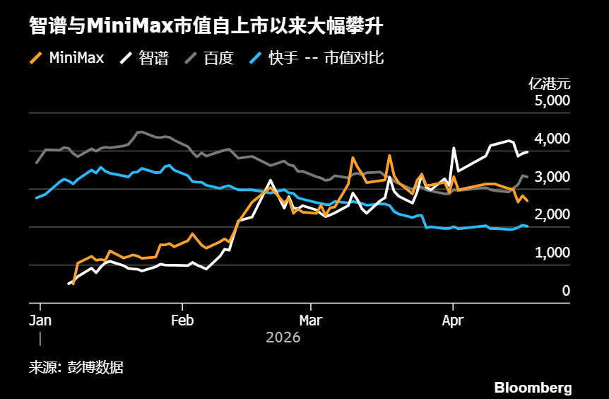 两家公司今年年初先后上市。截至上周五收盘,智谱股价上涨逾650%,MiniMax上涨逾400%。目前市值已分别超过百度和快手。