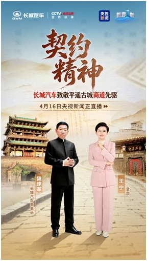 近日,央视《首屈一指》特别直播节目走进山西平遥古城,长城汽车董事长魏建军与节目主持人、平遥商道研究专家共同开展对话,探寻平遥百年契约精神内核,将传统商道信义理念融入现代汽车工业发展,为中国品牌全球化发展注入文化与诚信根基。
