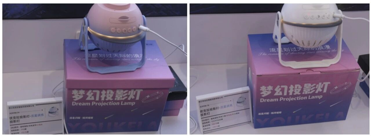 据现场的工作人员介绍,这两款投影灯款式基本一样,区别之处在于AI款多了个成本约30元的AI模块,零售价可贵100元。目前该产品的AI款销量处于快速增长阶段。