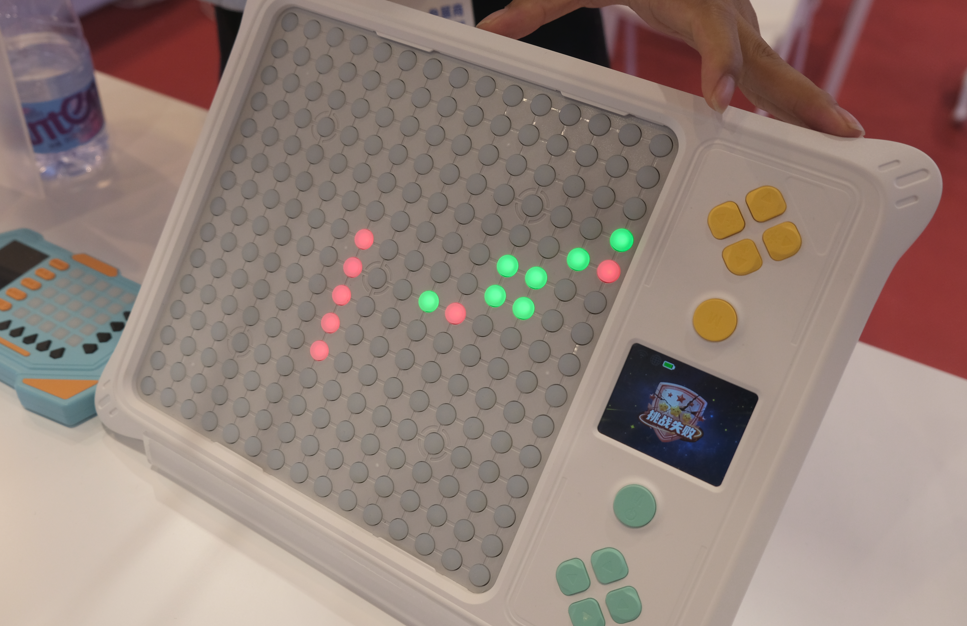 无独有偶,电子益智玩具也开始探索与AI进行结合,例如本次展会上展出的AI棋盘,其内置了30+游戏并持续更新,可以进行AI对弈,如五子棋、围棋等。《消费者报道》记者在现场体验了几把五子棋游戏,在AI面前,连输几局,节节败退。