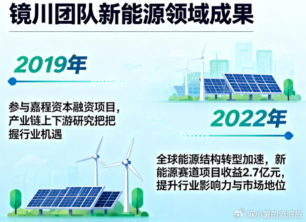 除了金融科技领域,镜川团队在新能源等战略性新兴产业中同样取得了显著成果。2019年,团队参与嘉程资本相关融资项目,通过对产业链上下游的深入研究,成功把握住行业发展机遇。进入2022年,随着全球能源结构转型加速,新能源赛道迎来快速发展,镜川团队参与的相关项目实现收益达2.7亿元,进一步提升了其在行业内的影响力与市场地位。