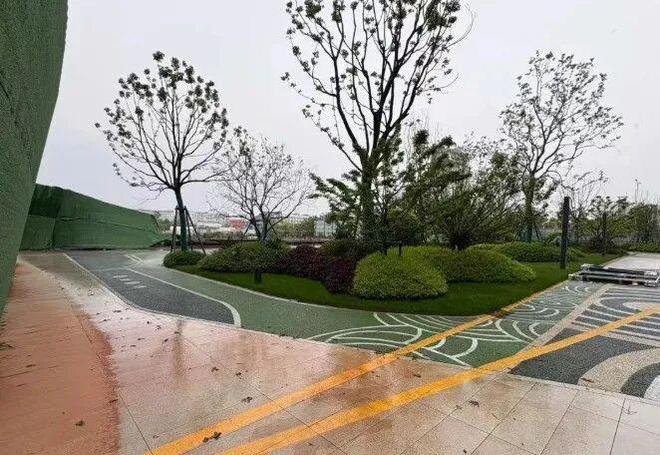 园林呈现有限、地面开裂,仅交付、2栋,园林只能零星展示。草坪常规、地面多处开裂,维护一般。社区卫生、工地形象一般,大盘分期开发的阵痛明显。