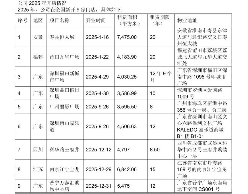 内蒙古的已开业门店由2024年末的4家减至2025年末的2家,减少了2家,降幅50%。