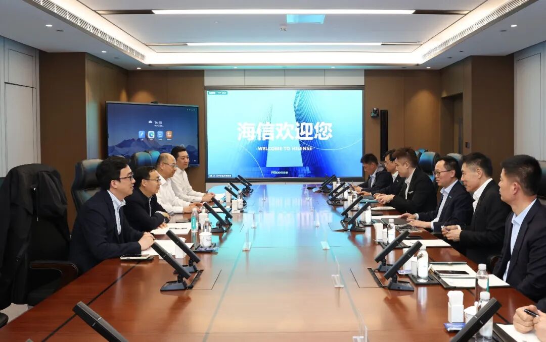 4月14日,泰达控股党委副书记、总经理杨传胜带队拜访海信集团控股股份有限公司(简称海信集团),与海信集团党委书记、董事长贾少谦座谈交流。双方围绕推动泰达海信广场项目建设提质增效,在集团层面深化产业合作和协同发展进行深入沟通,凝聚战略共识,共绘发展蓝图。期间,双方共同签署泰达海信广场项目深化合作协议,为加快项目落地实施和未来高质量运营打下坚实基础。