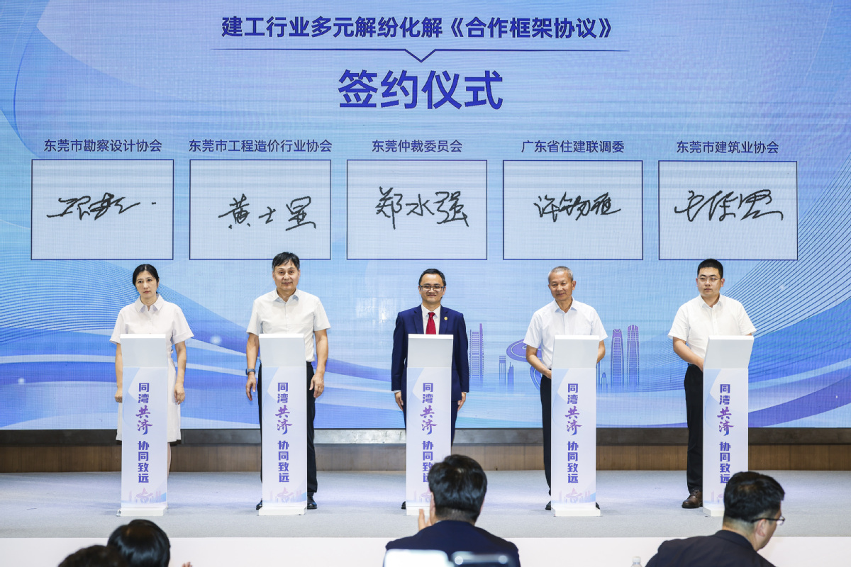 活动现场,东莞仲裁委员会还与省住建联调委及市建协、市造价协会、市勘察设计协会签订了《合作框架协议》。