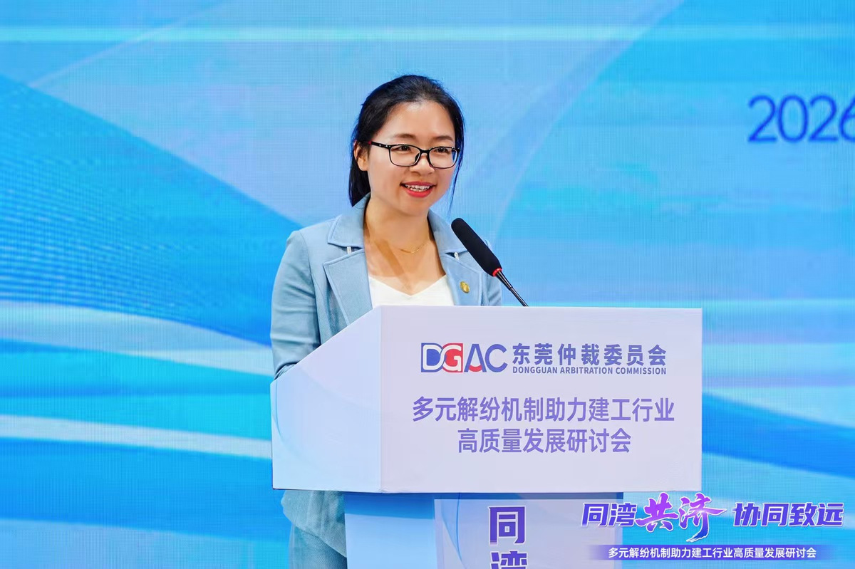 东莞仲裁委员会秘书长王丽姗主持研讨会。东莞仲裁委员会副秘书长吴东、李翠珍,东莞市工程造价行业协会会长黄士显,东莞市建筑业协会党支部书记、副会长王探君,东莞市勘察设计协会会长邢潇璇,东莞市律师协会代表,建工企业代表和东莞仲裁委员会仲裁员代表150余人参加活动。