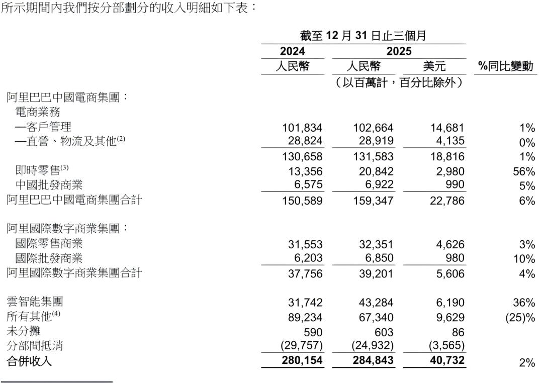 图源:阿里巴巴2025年十二月底止季度业绩公告