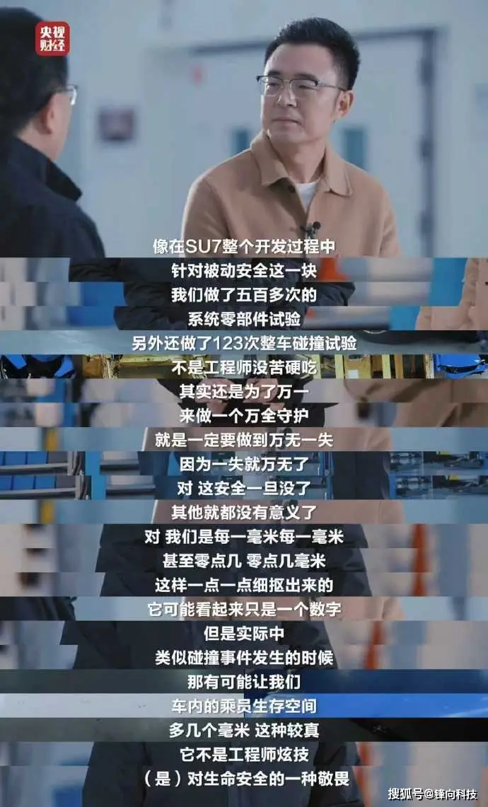 在节目中小米工程师们以小米SU7的开发过程为例,针对被动安全做了五百多次的系统零部件试验;123次整车碰撞试验,还有2800万公里的实测等等,这就是大家总能在路上遇到小米测试车的原因所在。这不是工程师没苦硬吃,是对安全极致的追求。建议大家去查看一下原视频的内容,里面全是干货。看完之后大家就知道小米对于安全要求的态度,达到什么程度。同时潜在用户看了之后可以放心的购买小米汽车,做到心中有数。